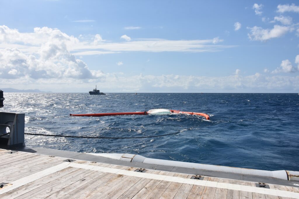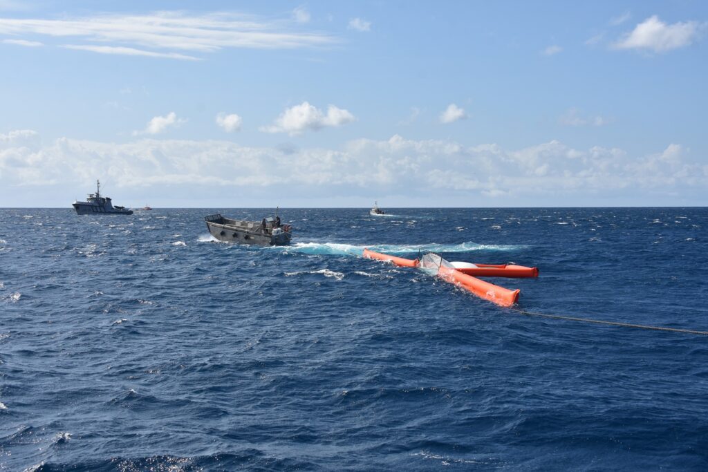 Desde el punto de vista técnico, el ejercicio desplegó medios representativos de una respuesta real. El buque de apoyo y asistencia ultramarino Dumont d’Urville y dos embarcaciones de la SNSM utilizaron redes de arrastre antipolución THOMSEA, equipos diferenciados de las barreras de contención convencionales empleadas en alta mar.