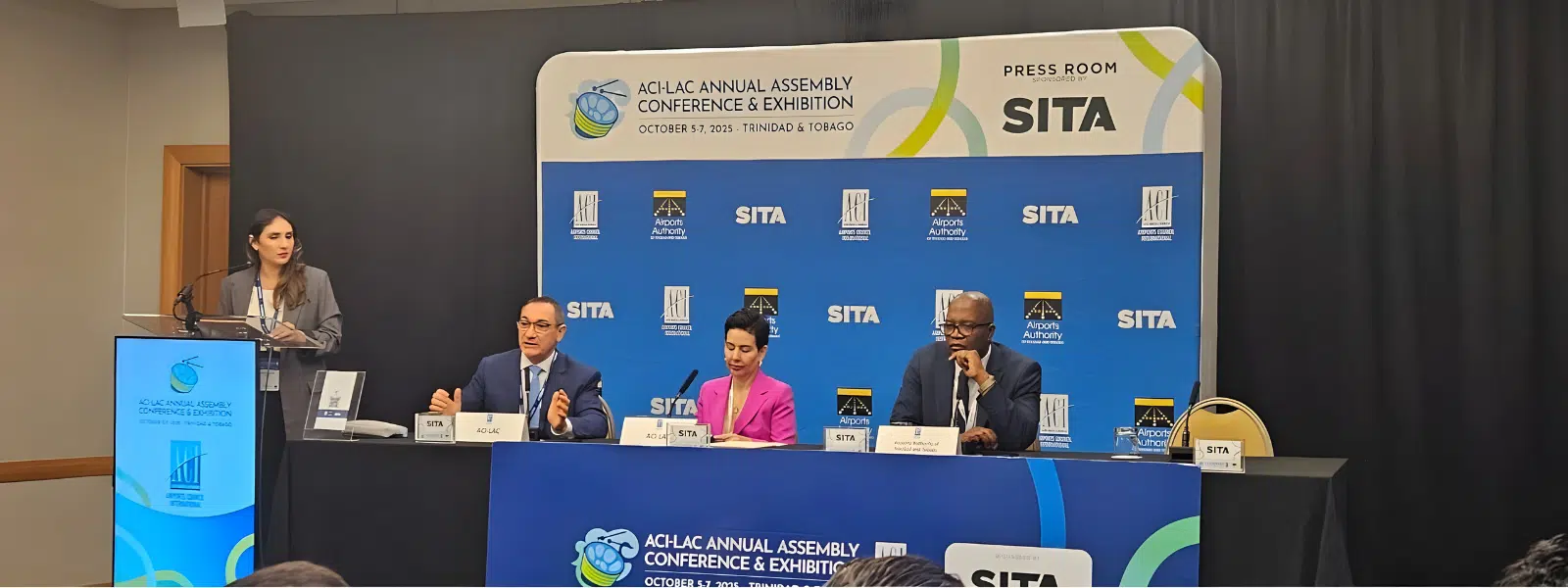 The press conference held in Trinidad and Tobago on October 6, 2025, as part of the ACI-LAC 2025 ANNUAL ASSEMBLY – CONFERENCE AND EXHIBITION, brought together the region’s leading airport industry executives. Around Mónica Infante (President of ACI-LAC and CEO of Aerodom), from the Dr. Rafael Echevarne (Managing Director, ACI-LAC) and Hayden Newton (Managing Director, Airports Authority of Trinidad and Tobago), discussions focused on traffic growth, sustainability and the investments needed to support the growth of air transport in the Caribbean and Latin America.